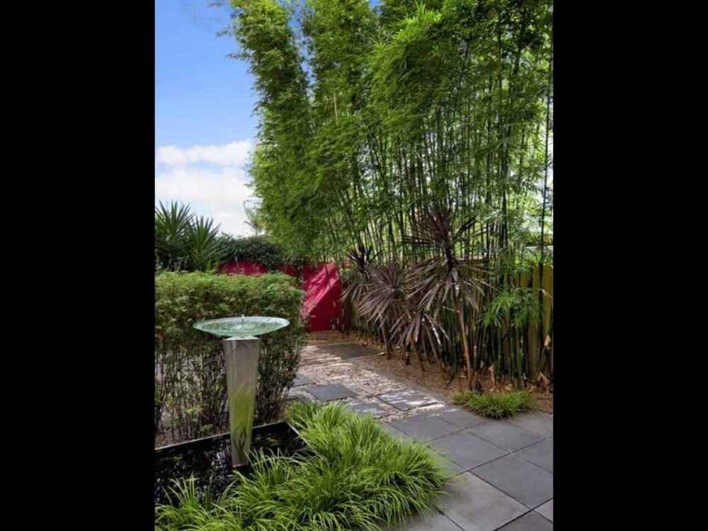Interior courtyard plus beautifully landscaped courtyard garden with shade awning, water feature and towering bamboo