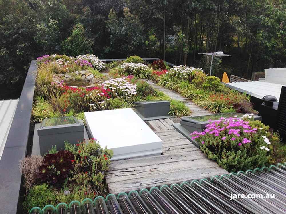 Underground 3500-litre rainwater tank supplies the courtyard water feature and automatic watering to the vertical and roof top gardens