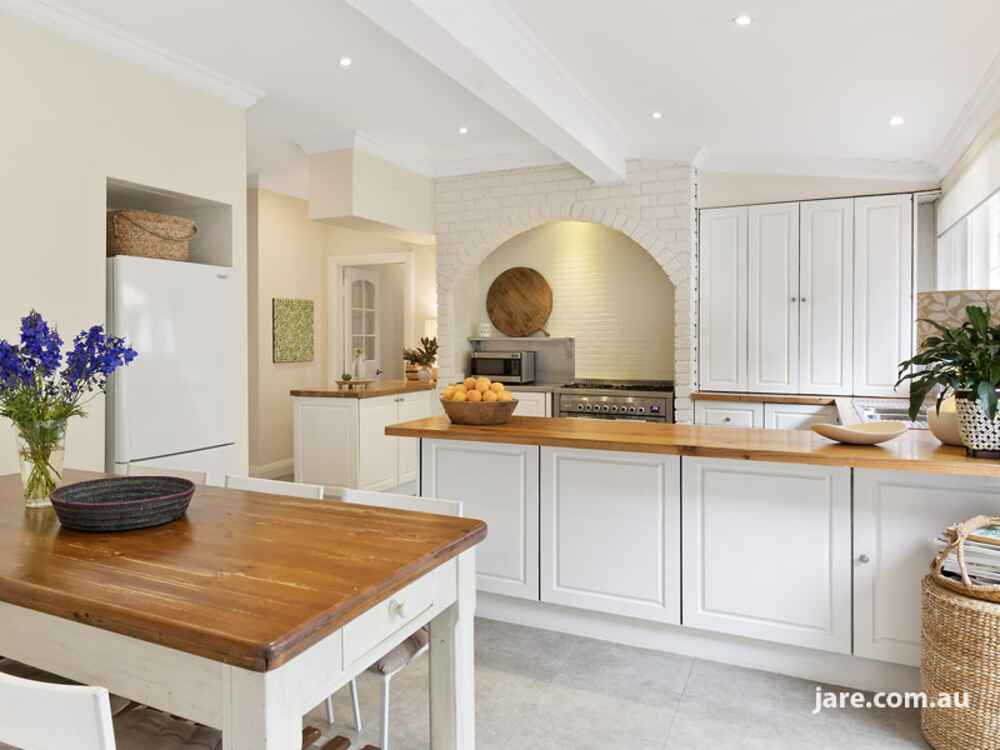 Charming country-style timber-topped gas kitchen with a walk-in pantry