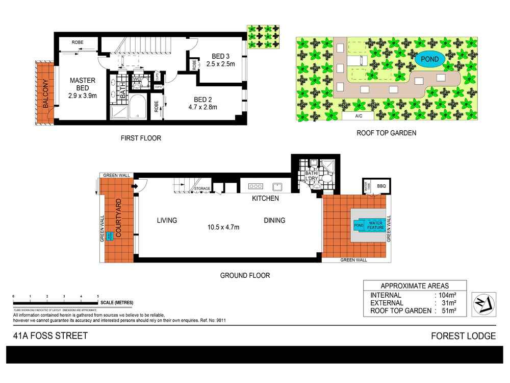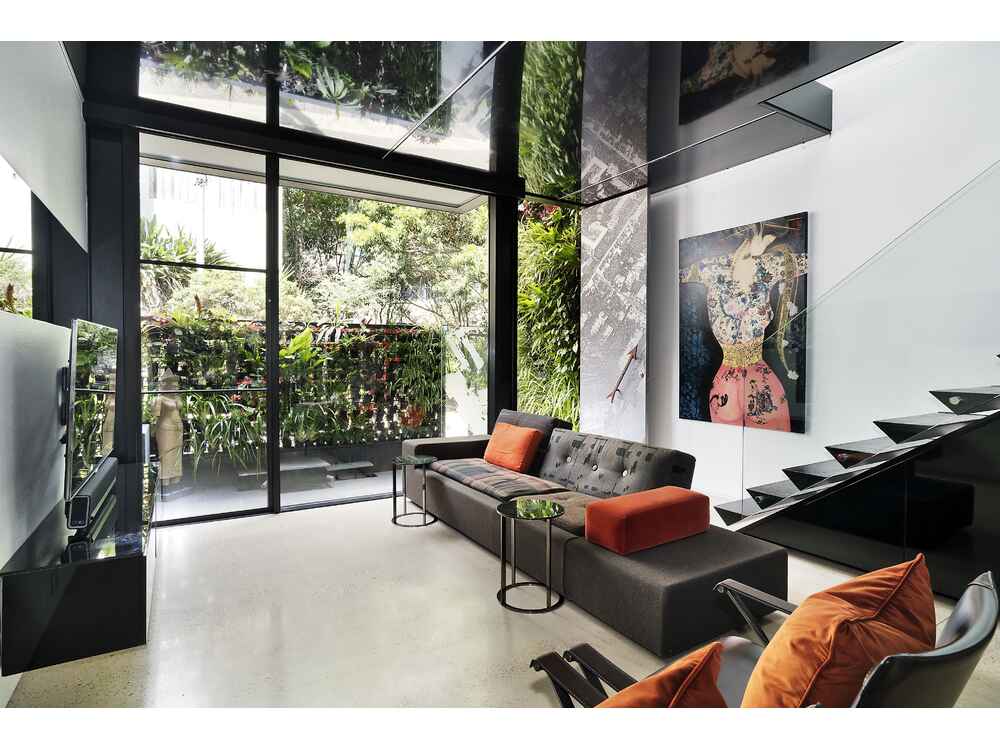 Vertical gardens in rear courtyard, gas BBQ, suspend glass table with water feature